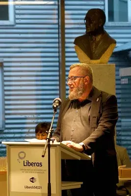 Op donderdag 26 september 2023 stelde Eric Bauwens De wiegjes van Lebensborn voor in Liberas, Gent. Rudy Vanschoonbeek van Uitgeverij Vrijdag verwelkomde het publiek en professor Dirk Rochtus gaf duiding bij de Lebensbornthematiek. Griet Pauwels, die we kennen van de Paarse Zetel, interviewde de auteur. Rosemarie Bergmans, bekend actrice en het laatst levende Belgische Lebensbornkind, legde een getuigenis af. Beloftevolle accordeonist Miró Pauwels zorgde voor muziek.